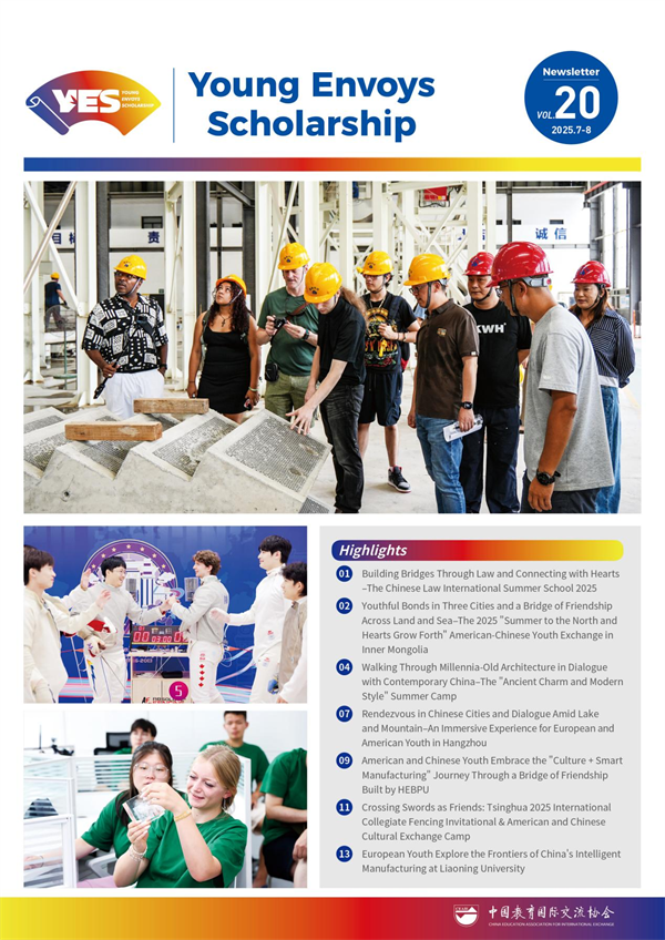 This issue of the “Young Envoys Scholarship” program Newsletter highlights 7 key activities of the exchange program for American and European youth in China from July to August 2025. Nearly 200 teachers and students visited cities including Beijing, Bayannur, Hohhot, Jinhua, Hangzhou and Shenyang. They deepened mutual learning and appreciation between Chinese and foreign youth through themed summer camps, academic exchange camps and international competitions.
